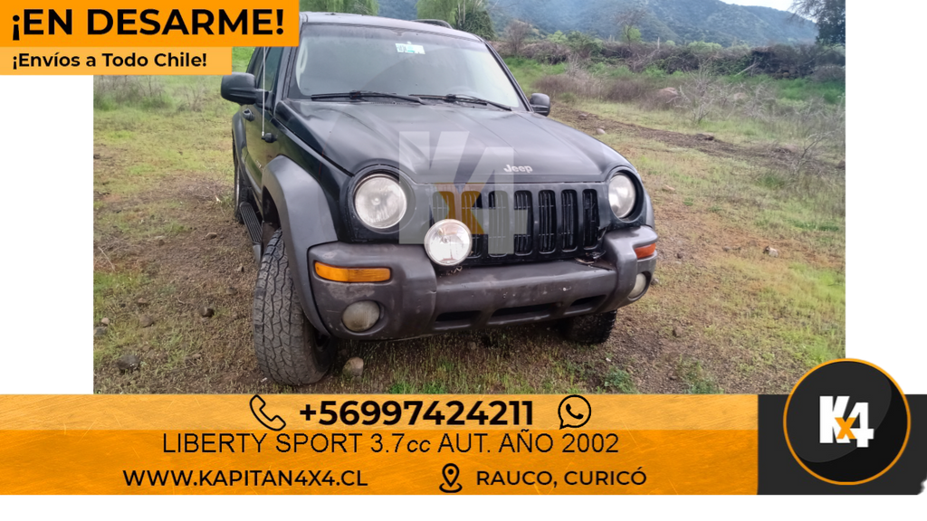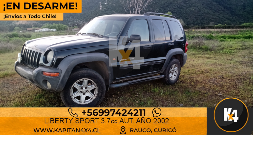 ¿Buscas repuestos originales para tu Jeep Liberty Sport 2002? ¡Aquí los encuentras! Desarmamos esta camioneta y vendemos cada una de sus piezas por separado. Contamos con motor, caja de cambios, componentes de suspensión, sistema eléctrico, carrocería, asientos, tableros... ¡Todo lo que necesitas para tu Jeep! Envíos a todo Chile. ¡Llámanos o escríbenos!